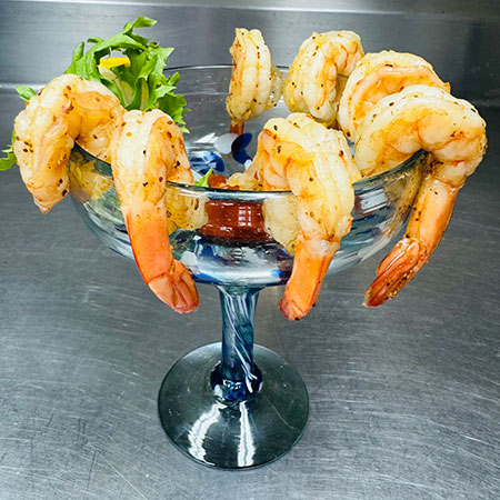 (7) jumbo shrimp, with lemon, and spicy horseradish sauce